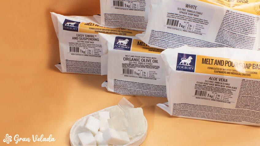 Glycerin-Basen sind „Melt & Pour“-Basen, also Schmelzen und Gießen, sehr einfach und angenehm zu verarbeiten. Dabei werden die Böden in kleine Stücke geschnitten und in der Mikrowelle oder auf dem Herd bei niedriger Temperatur geschmolzen. Mit Ausnahme der Basis im rustikalen Stil, deren Verwendung wir unten erklären. Sobald die Seife flüssig ist, fügen wir Farbstoffe , Essenzen und Wirkstoffe hinzu und gießen sie in die Formen . Wir lassen es vollständig abkühlen, bevor wir es aus der Form nehmen und die Seifen verwenden.